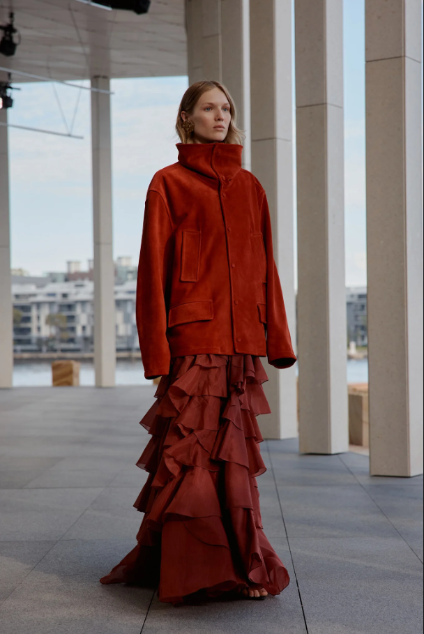 - V-neck centre neck cut-out with framing ruffles for bra-friendly wear