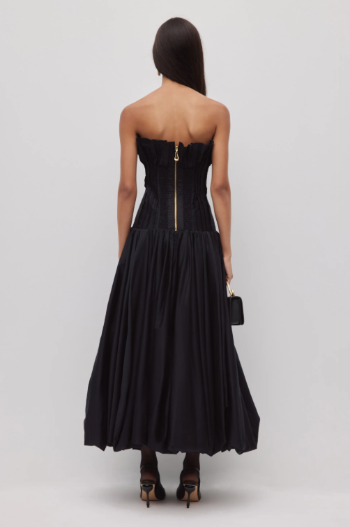 - Draped full skirt with bubble hem