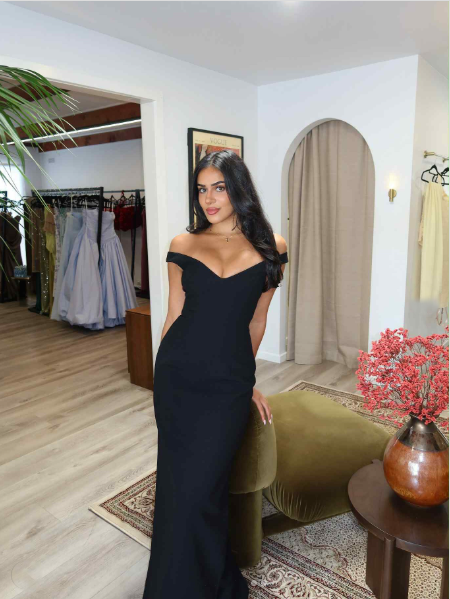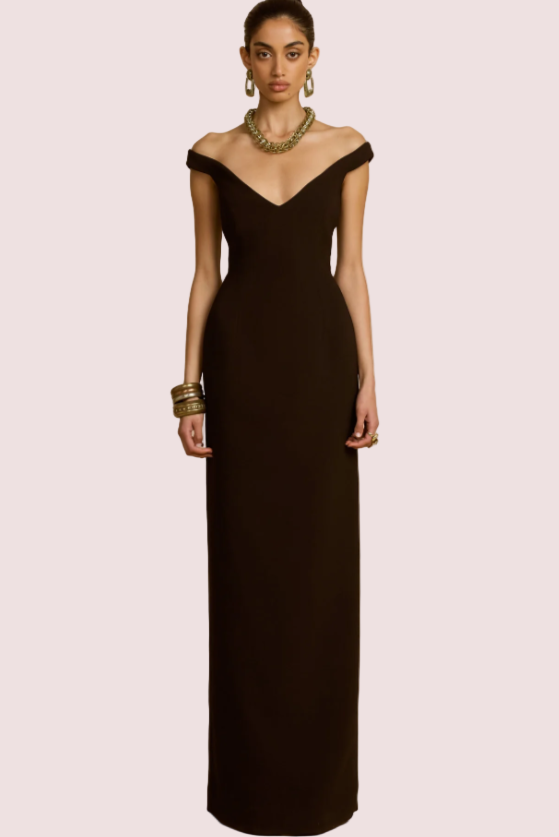 Striking in simplicity, Ellery is a black maxi designed to contour and flatter. Crafted from a sculpting crepe, she features an effortless off-shoulder neckline that flatters the décolletage, before descending into a floor-length dress. Elegant yet timeless, Ellery is made for lasting moments.