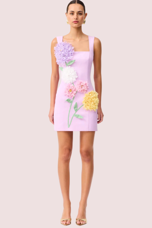 Perfect for garden weddings, spring soirées, or birthday celebrations, this mini dress effortlessly blends playfulness with sophistication. Pair it with strappy heels and delicate jewellery for a look that’s both timeless and delightfully fresh.