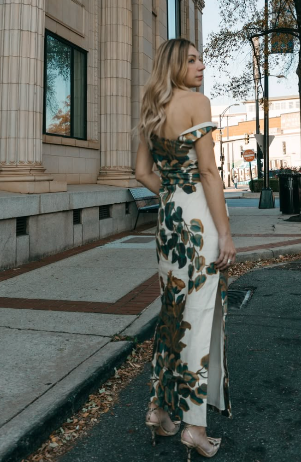 The Evalita Twist Midi Dress is an event-ready style crafted from our signature linen, in a SIR. exclusive print inspired by autumnal foliage with painterly leaves. It features an off-shoulder neckline, twisted straps and a softly tucked waist that gives way to a mid length hem. Pair back with heels for your next event.