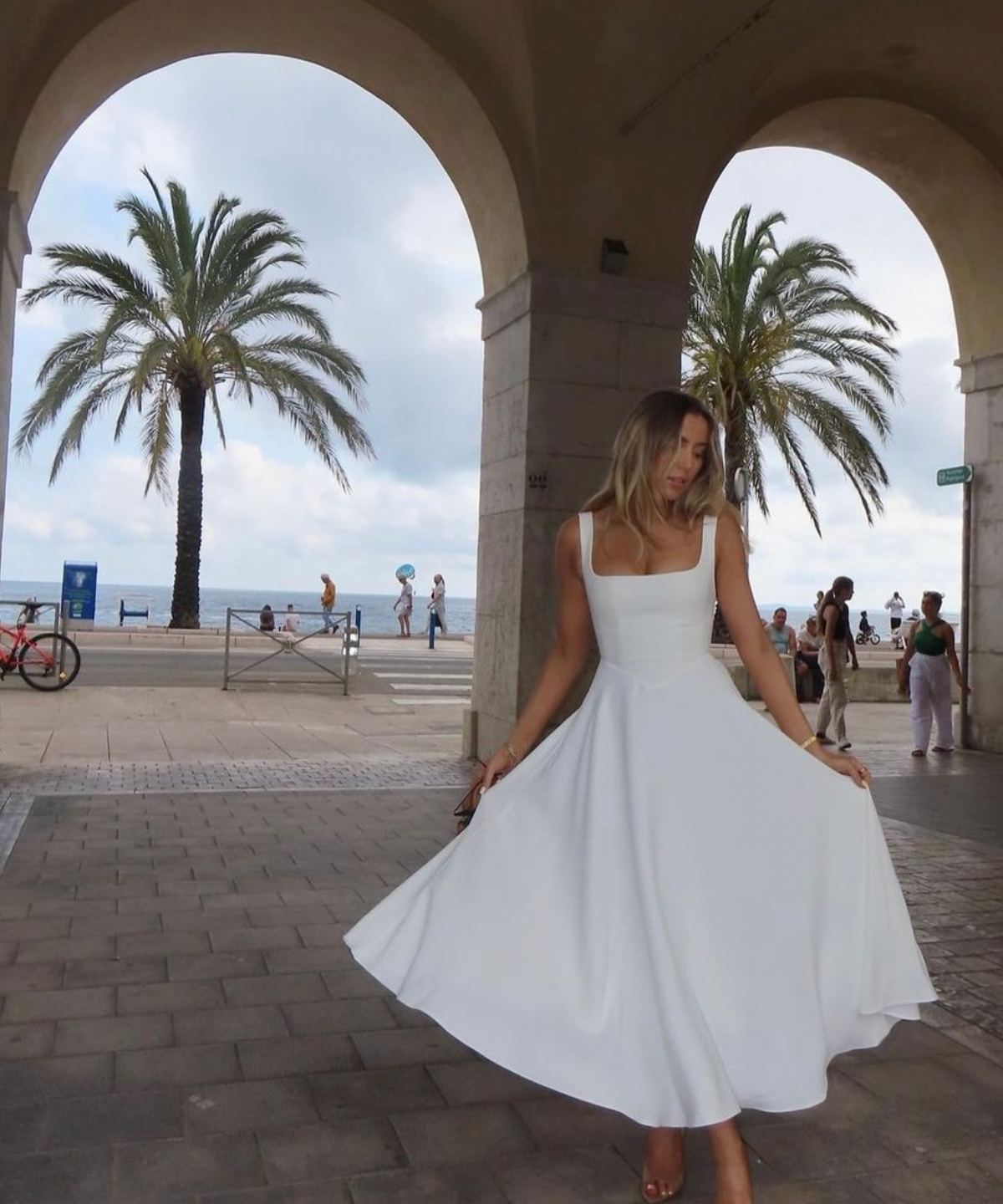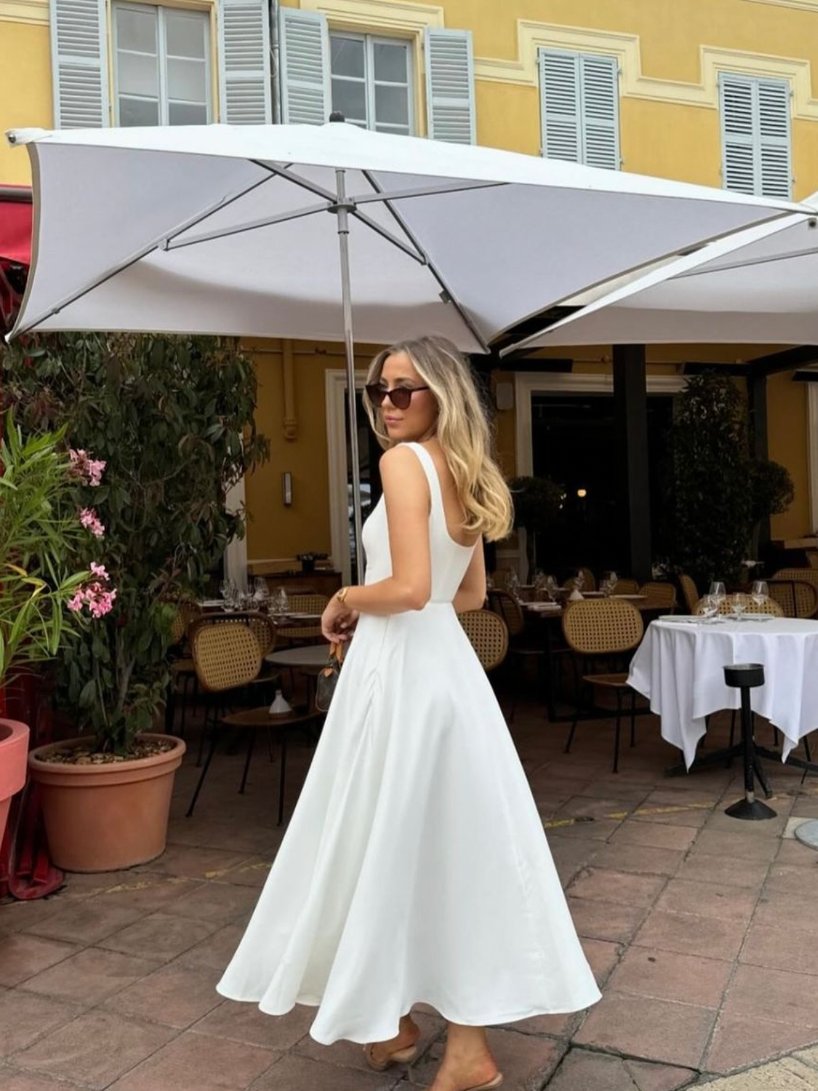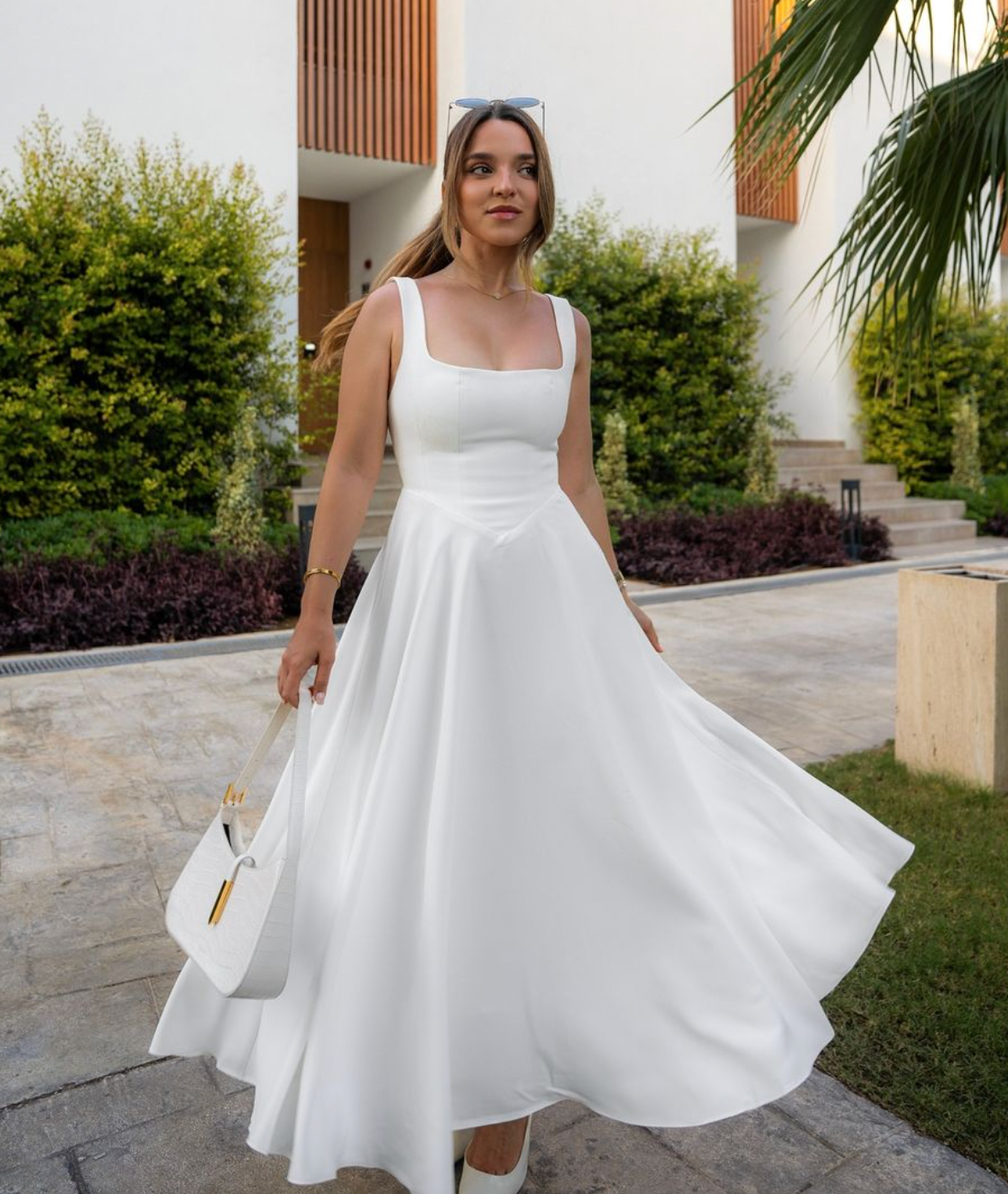 Odd Muse High Waist Square Neck Midi Dress White Size 10