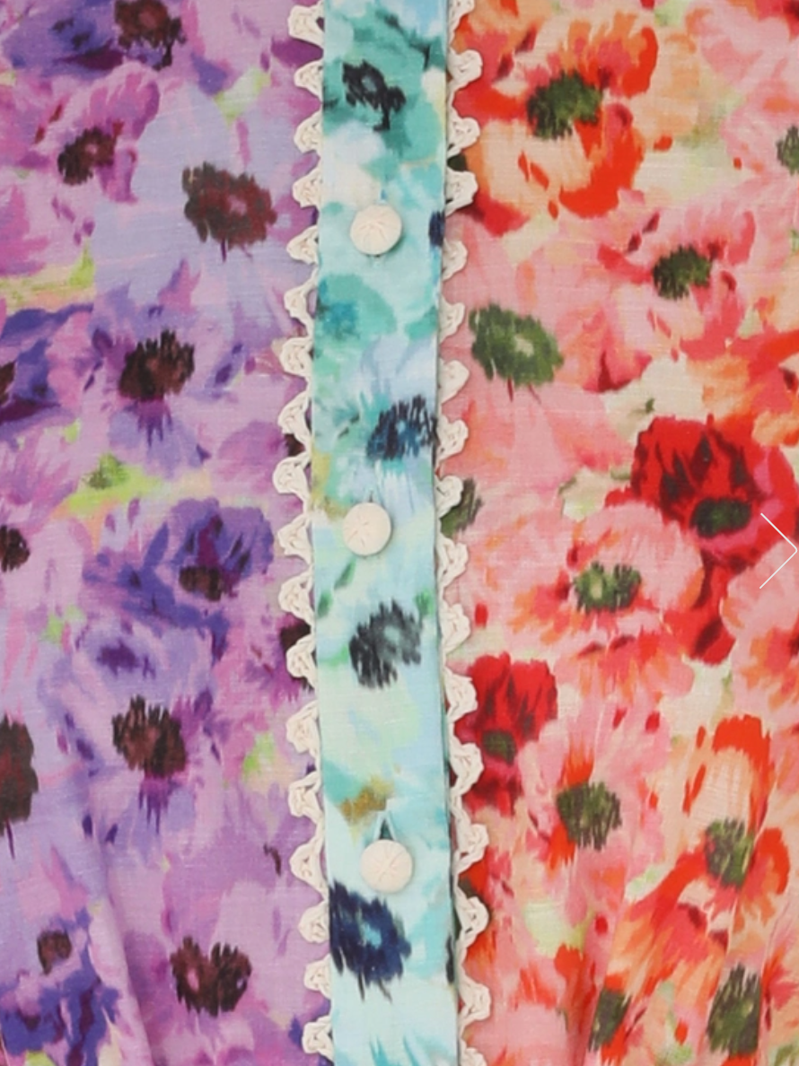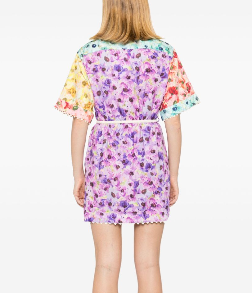 Zimmermann's 'Lightburst' dress is printed with an array of flowers in different colorways for a patchwork effect. Cut from lightweight cotton, it's decorated with a tropical logo patch and has airy crochet trims, including an optional belt.