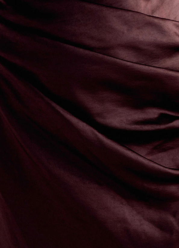 The DALIA Off-Shoulder Satin Maxi Dress is a statement of modern sophistication. Designed with an asymmetrical draped neckline, this sleeveless silhouette exudes effortless glamour. The fitted, boned bodice provides structure and support, while the gathered hip detail enhances the figure with soft, sculptural draping. Crafted in a fluid satin fabric and finished with an internal elastic waist stay for a secure fit, this maxi-length gown moves beautifully with every step. A discreet side zip and hook-and-eye closure ensure seamless wear, making this dress perfect for elegant soirées, black-tie events, or bridal celebrations.