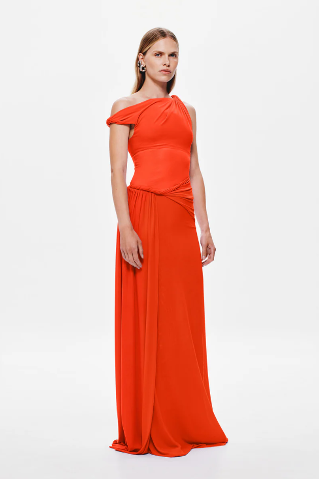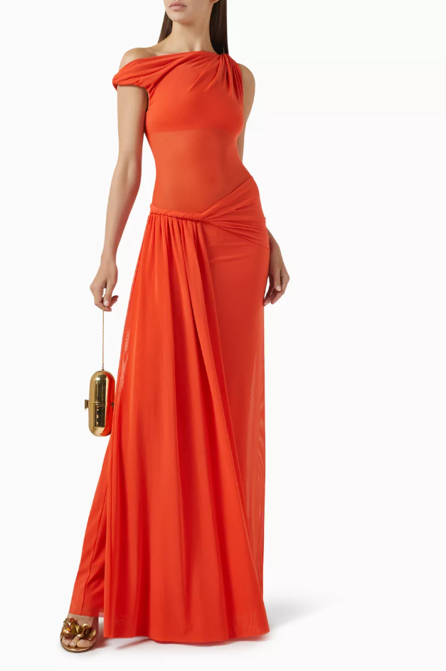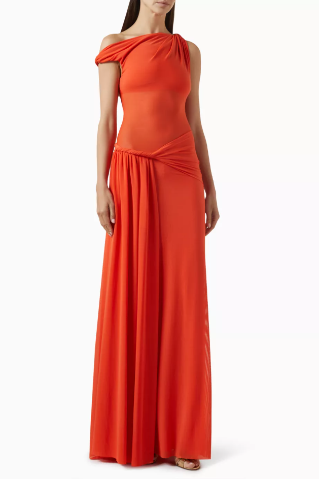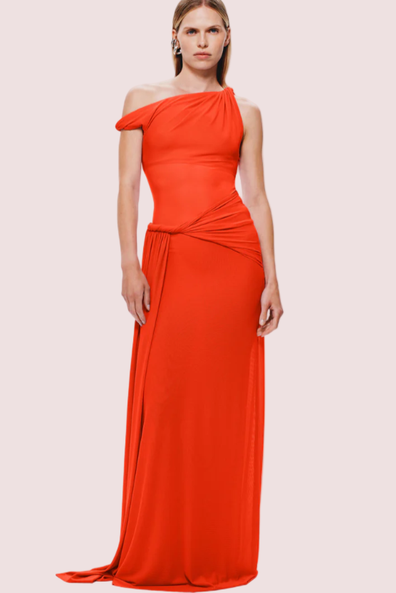The 'Sisal' Mesh Maxi Dress in Chilli Red.