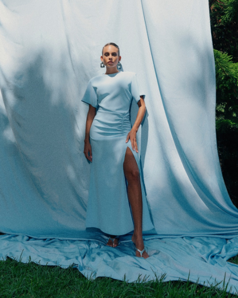 The Infusion Dress in cool blue delivers timeless elegance with a contemporary edge. Designed with a relaxed crew neckline, short sleeves, and asymmetric fixed ruching through the front, this maxi silhouette offers an off-body flattering, feminine fit. Versatile and chic, it’s perfect for a range of occasions — from daytime events and summer lunches to evening gatherings — with styling that can be easily dressed up or down.