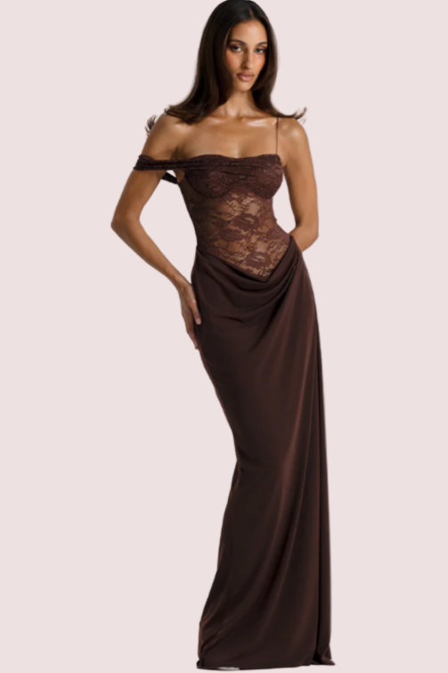 A vision of modern elegance, Sloane blends sensual lace with elegant jersey knit draping.