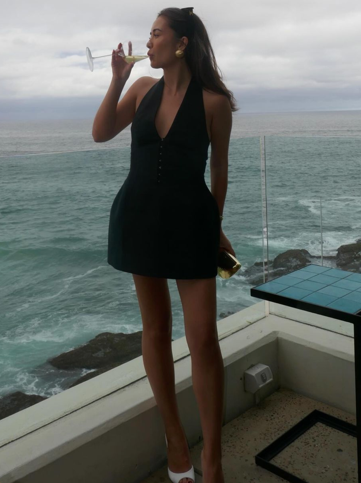 Introducing the Camilla and Marc Petra Mini Dress in Black. This mini dress is crafted with a wool blend base and transcends conventional design with its remarkable form and detail. The black mini dress with a halter neckline exudes timeless allure, while the sculpted silhouette celebrates the female form with elegance and grace. Elevating the ensemble, the centre front hook and eye detail adds a touch of edge that's impossible to ignore.