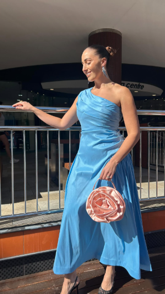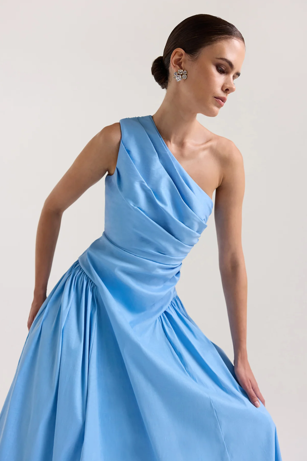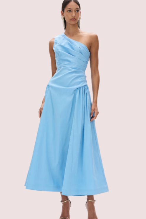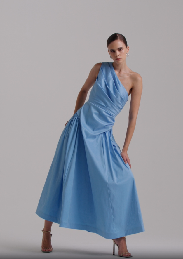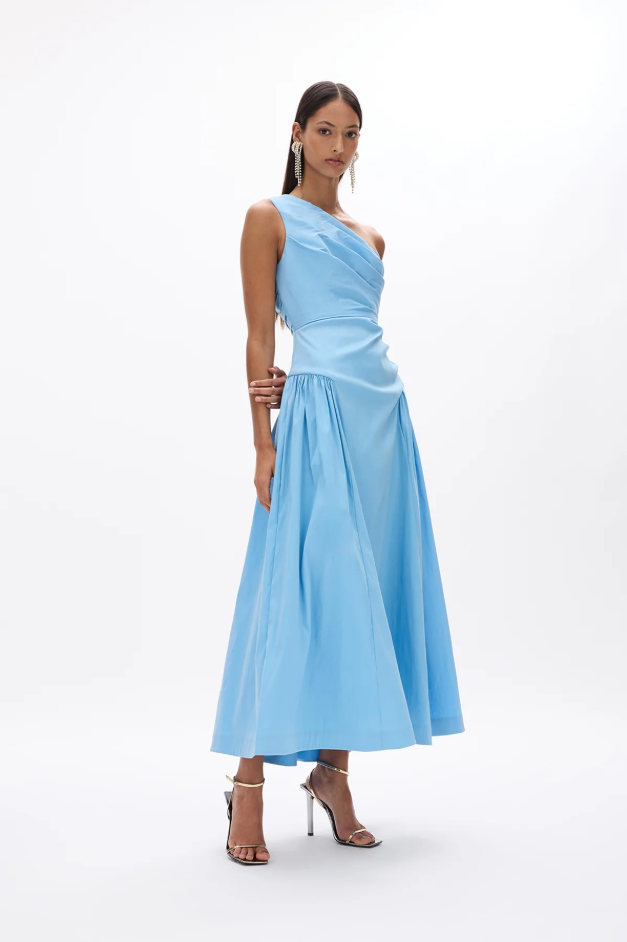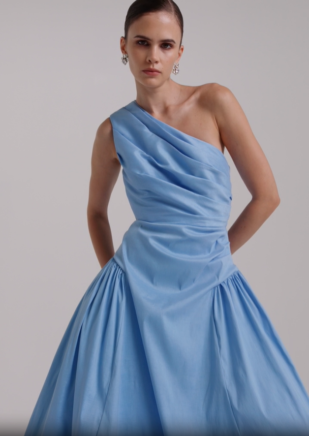 The Banksia dress is a fit and flare one shoulder silhouette. This style features light internal corsetry to define a natural hourglass shape before falling to an a-line silhouette and is cut from our signature Taffeta fabric offering a lightweight and wearable sartorial solution perfect for events in the warmer months.