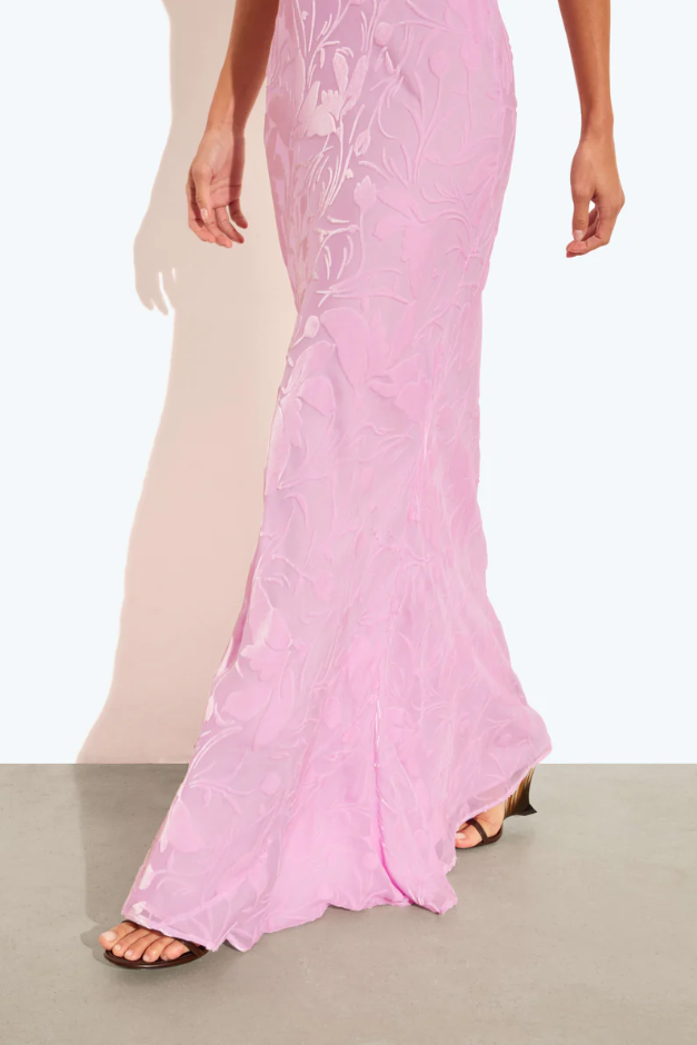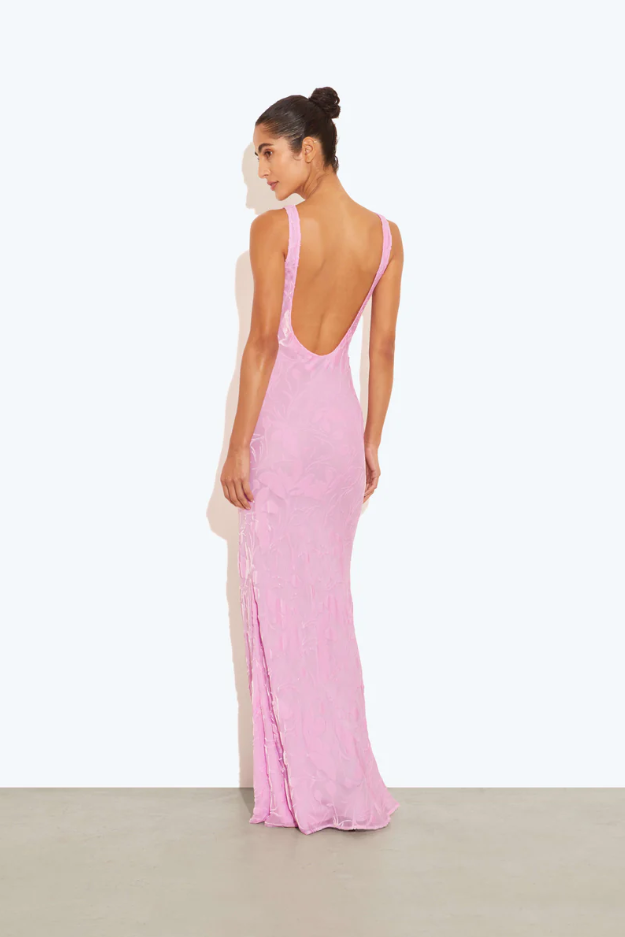 Amaris is our falling flower devore velvet dress, a playful new motif for the season. Cut on the bias from smooth, silky, figure-hugging viscose and fully lined, she’s a cool and simple choice for magic moments.
