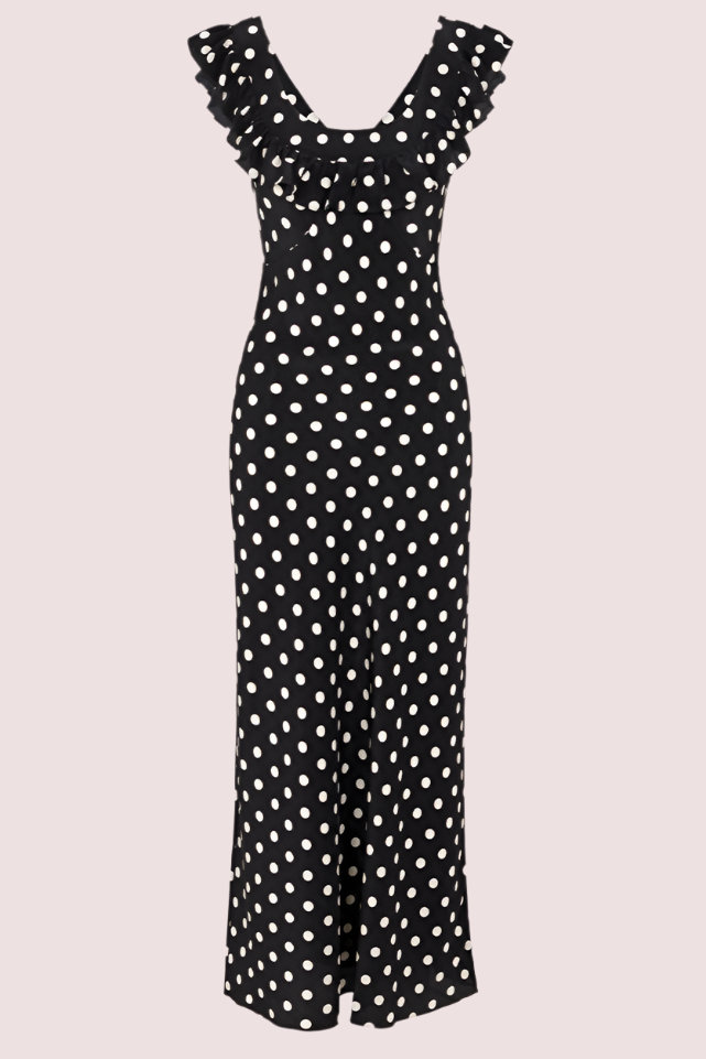 The Minnie — sister to our beloved Claudia, now in timeless black and white polka dot. Chic and effortlessly classic, she’s the full-length dress your summer wardrobe has been waiting for. With a subtle frill at the neckline and a silhouette made to slip off sun-kissed shoulders, The Minnie is all ease and elegance. Just add a French basket, your favourite ballet flats, and you’re good to go.