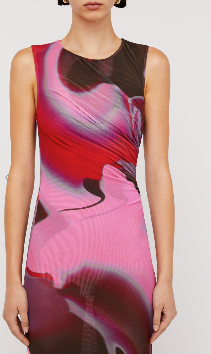 The Italian Watercolour Print Dress invites modern femininity to occasion wear. Exclusively designed in-house as a hand-painted interpretation of watercolour illustrations, the abstract motif is carefully printed in our Italian atelier on a high quality mesh fabrication. Crafted to a minimalist silhouette, the dress is defined by the asymmetrical, gathered detailing down the side of the waist for a flattering fit. Pair with minimalist accessories for upcoming events.