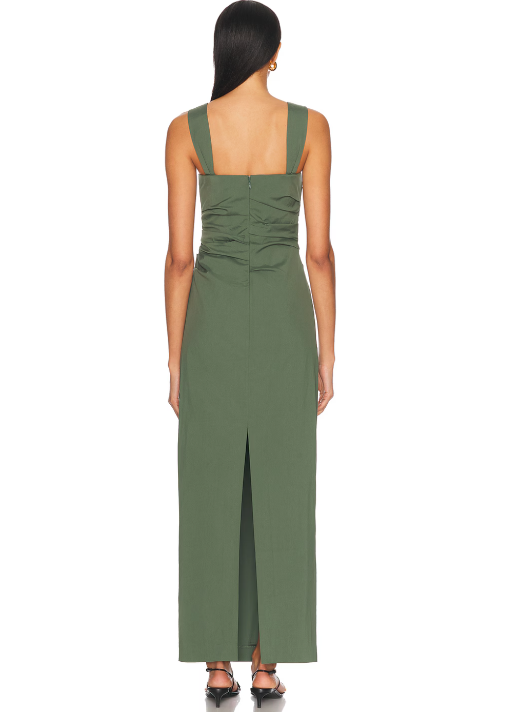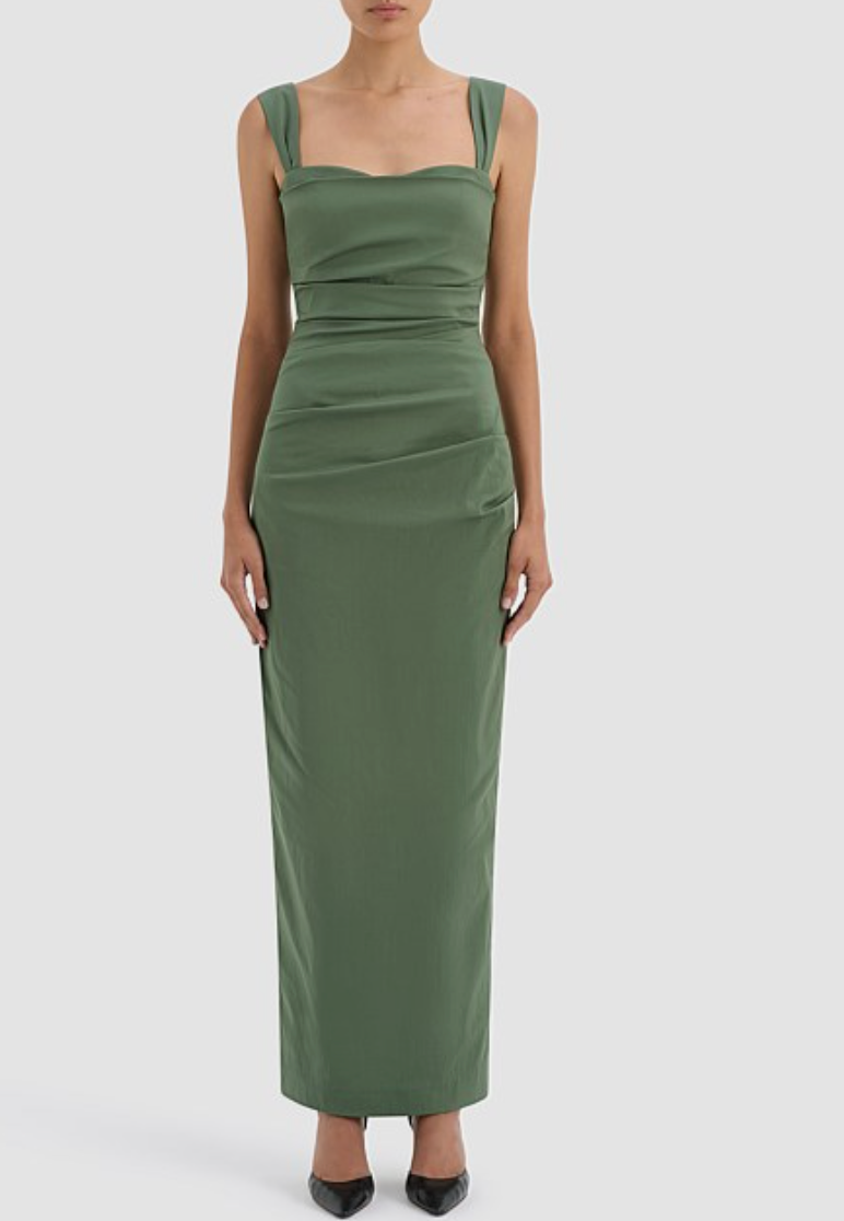 The Floreat Balconette Gown in Green is a feminine and modern dress, ideal for any special occasion. It features wide straps, an underwire bustier detail, back split and tucks for a gathered finish through the body. Crafted from an Italian cotton fabrication offering ruching through the waist to ensure a flattering fit.